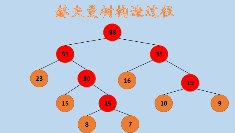 下面来看一下动图建立赫夫曼树的过程,如下所示: