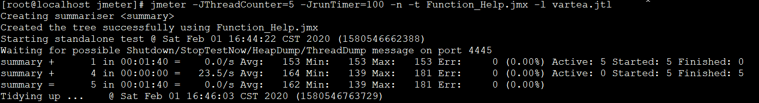 jmeter -JThreadCounter=5 -JrunTimer=100 -n -t Function_Help.jmx -l varstea.jtl -e -o ./varReport