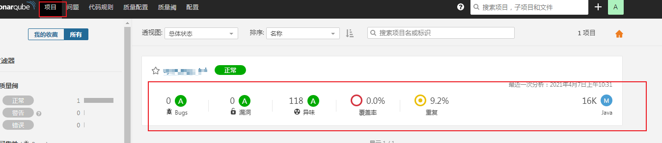 检测的结果也可以在sonarqube中查看,访问上文配置的地址即可,看完后就可以有理由的喷一喷小弟了。