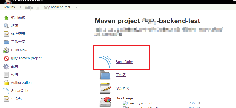 4.其他的按正常流程走 最后保存 然后立即构建。配置好后这里会有SonarQube的标志