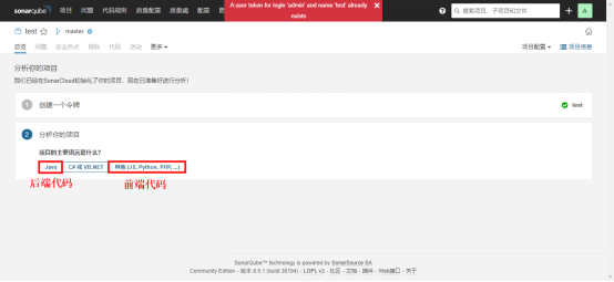 3.1前端的不需要加最后一行(sonar.java.binaries=项目路径)