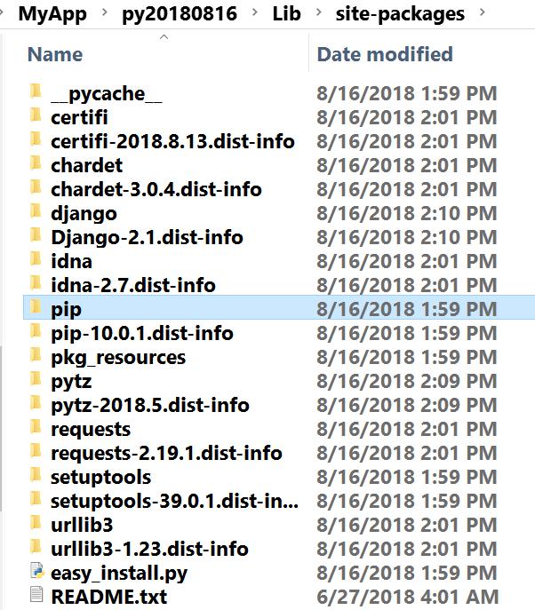 pip安装完成后,会出现在Python运行环境目录下的Lib/site-packages文件夹里。