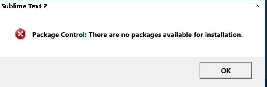 遇到错误消息:Package Control: There are no packages available for installation.