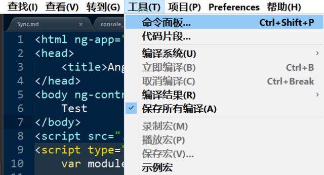 工具->命令面板或者快捷键Ctrl+Shift+P: