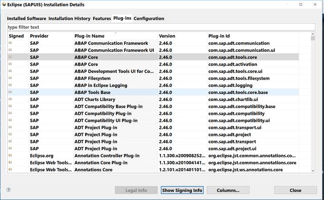 所有安装的插件列表可以在Eclipse的菜单:Help->About Eclipse里查看: