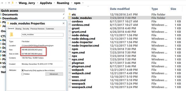 如果是npm -g install <pacakge name>, 则会把库安装到C:Usersi042416AppDataRoaming pm下面: