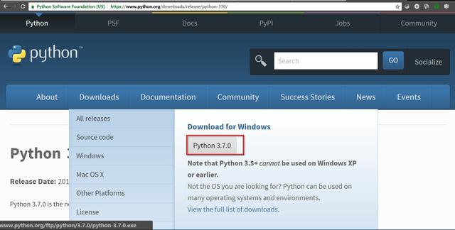 首先安装Python运行环境Python 3.7.0:https://www.python.org/downloads/release/python-370/