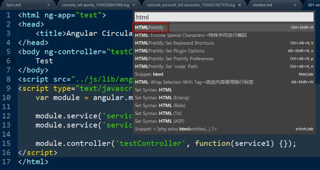 输入HTMLPrettify即可自动美化当前打开的HTML代码。