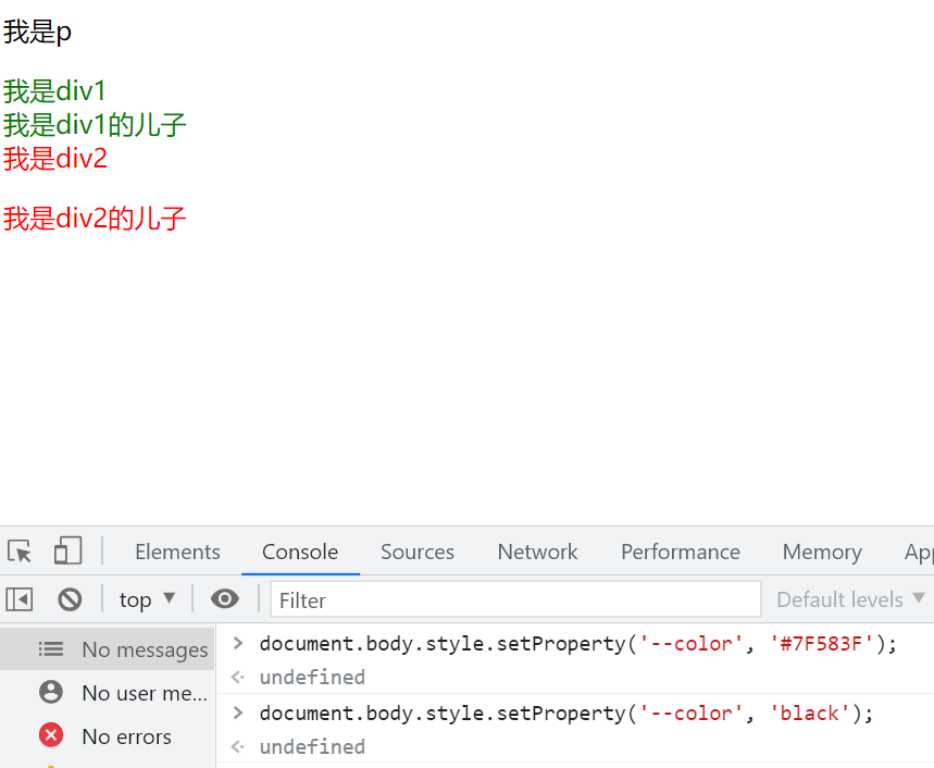 该div用的child2将不会是绿色的。这将是red,#child2 {--color: red;}