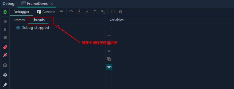 多个线程进行DEBUG,则可以在启动的进程窗口下Threads中切换线程。