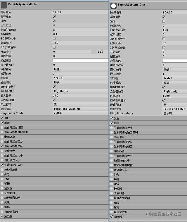 粒子主要分为两个:动态的火光以及正中心耀眼的白球【百科说太阳其实是白色的】,使用的属性如下图: