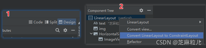 切换为Design模式-右键Component Tree-选中Convert …… to ConstraintLayout,如下图: