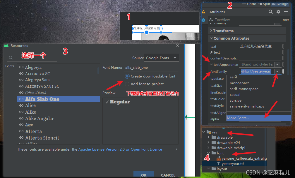 - 打开列表找到More选择合适字体右侧会提示下载模式或者打包模式,选中一个点击OK即可
