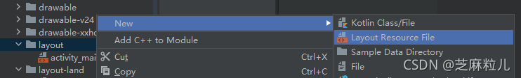 选中res下的layout文件夹,右键New-Layout Resource File创建新布局文件