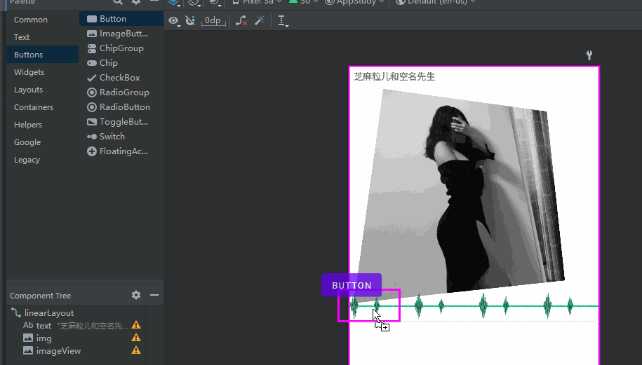 所有的UI控件都支持拖动到布局中,Android前期最开始的时候就支持拖动,但也仅仅支持将控件拖拽到布局,再给UI控件精确定位的拖拽就不支持了,搞出来的乱糟糟还不如写代码。后来有了ConstraintLayout约束布局,该布局有除了很好的属性,支持拖拽外,还可以减少布局层级,而且多分辨率适配也表现良好。可真是集万千宠爱于一身啊。
