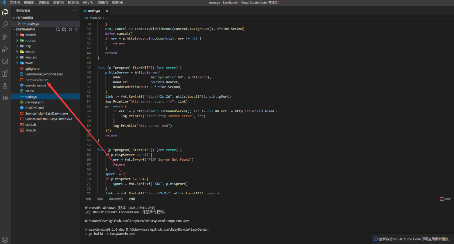 出现EasyDarwin.exe说明Windows环境下运行成功了。