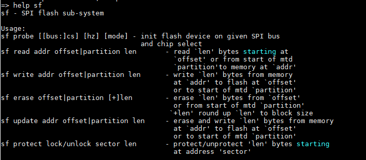 uboot 的 sf 命令可以用来访问 SPI NOR flash;具体如下图所示: