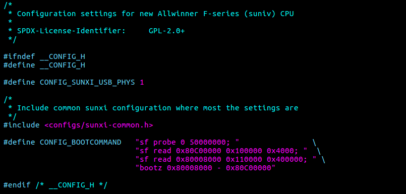 我在这里打开了全志的SOC的配置文件,在uboot的include/configs/suniv.h路径下,具体如下图所示: