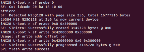 把内存0x42000000处的数据, 写入flash的偏移0x0, 写入数据长度为0x300000, 操作偏移和长度最小单位是Byte