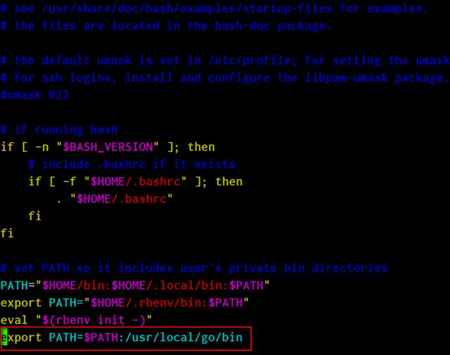 echo ‘export PATH=$PATH:/usr/local/go/bin’ >> ~/.profile