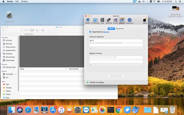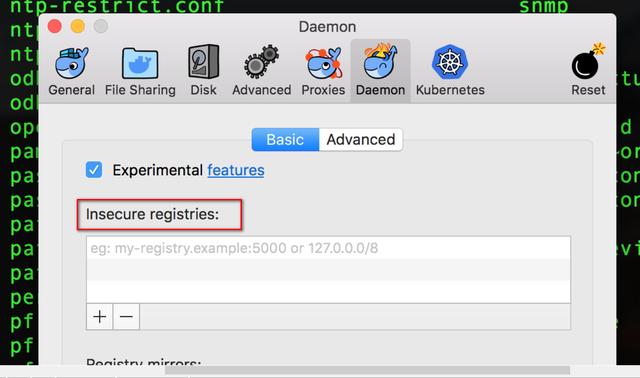 将错误信息里提到的gcr.io维护进Insecure registries, 点击按钮"Apply & Restart", 重新启动Docker Daemon: