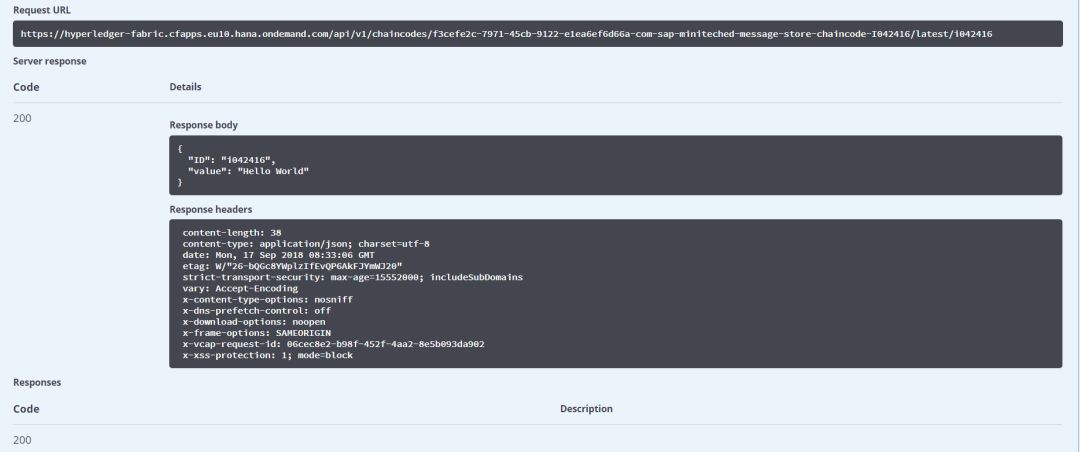 post请求在SAP云平台上的超级账本执行成功,返回200响应码: