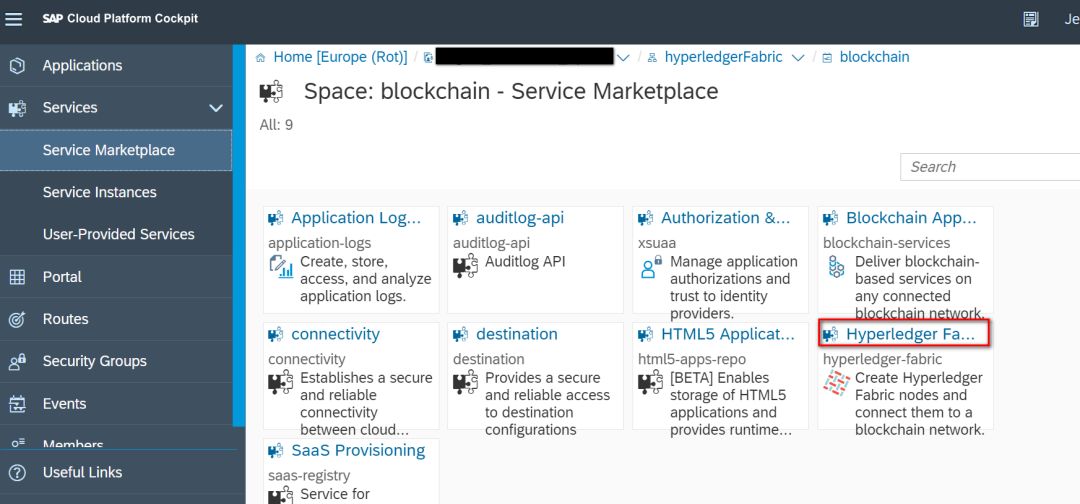 4. 登录SAP云平台,在Service Marketplace里点击Hyperledger Fabric的超链接: