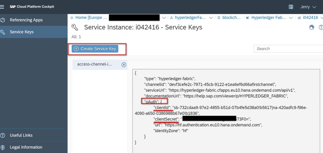 还记得上一篇文章Aviva提到区块链分为公有链,私有链和联盟链,而超级账本属于联盟链么?在联盟链里,有一个专门的称为MSP(Membership Service Provider)的模块,提供成员管理服务,只有授权用户才能接入区块链网络。这里我事先在SAP云平台上创建了一个渠道并进行认证,因此此处直接输入一个合法的渠道ID和密匙。关于SAP云平台上超级账本渠道的创建和成员授权接入的步骤,请参考SAP帮助文档: