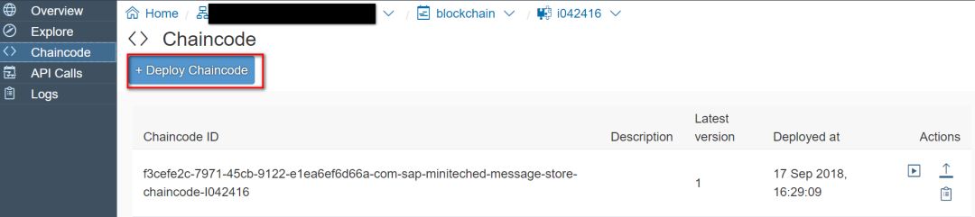 点击Deploy Chaincode,选择本地构建好的zip包,进行上传并部署。这个按钮同SAP云平台Neo和CloudFoundry环境部署本地应用的逻辑相同。