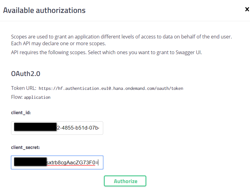 输入第四步创建Service Key后生成的clientID和clientSecret进行认证: