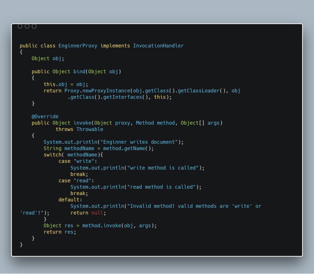 这种通过同一个回调函数内部的switch case来处理多个场景的做法,ABAP和Java开发者应该都不陌生。比如下图是通过InvocationHandler实现Java动态代理的例子,其中invoke方法的逻辑结构和本文智能合约代码的结构非常相似。