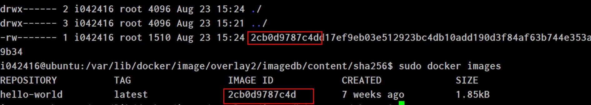 进入该子文件夹,会看到一个以镜像ID命名的文件,我们用命令行docker images看到的镜像ID的前12位就来自这个文件。