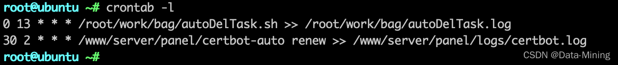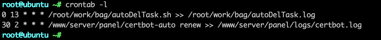 0 13 * * * /root/work/bag/autoDelTask.sh >> /root/work/bag/autoDelTask.log