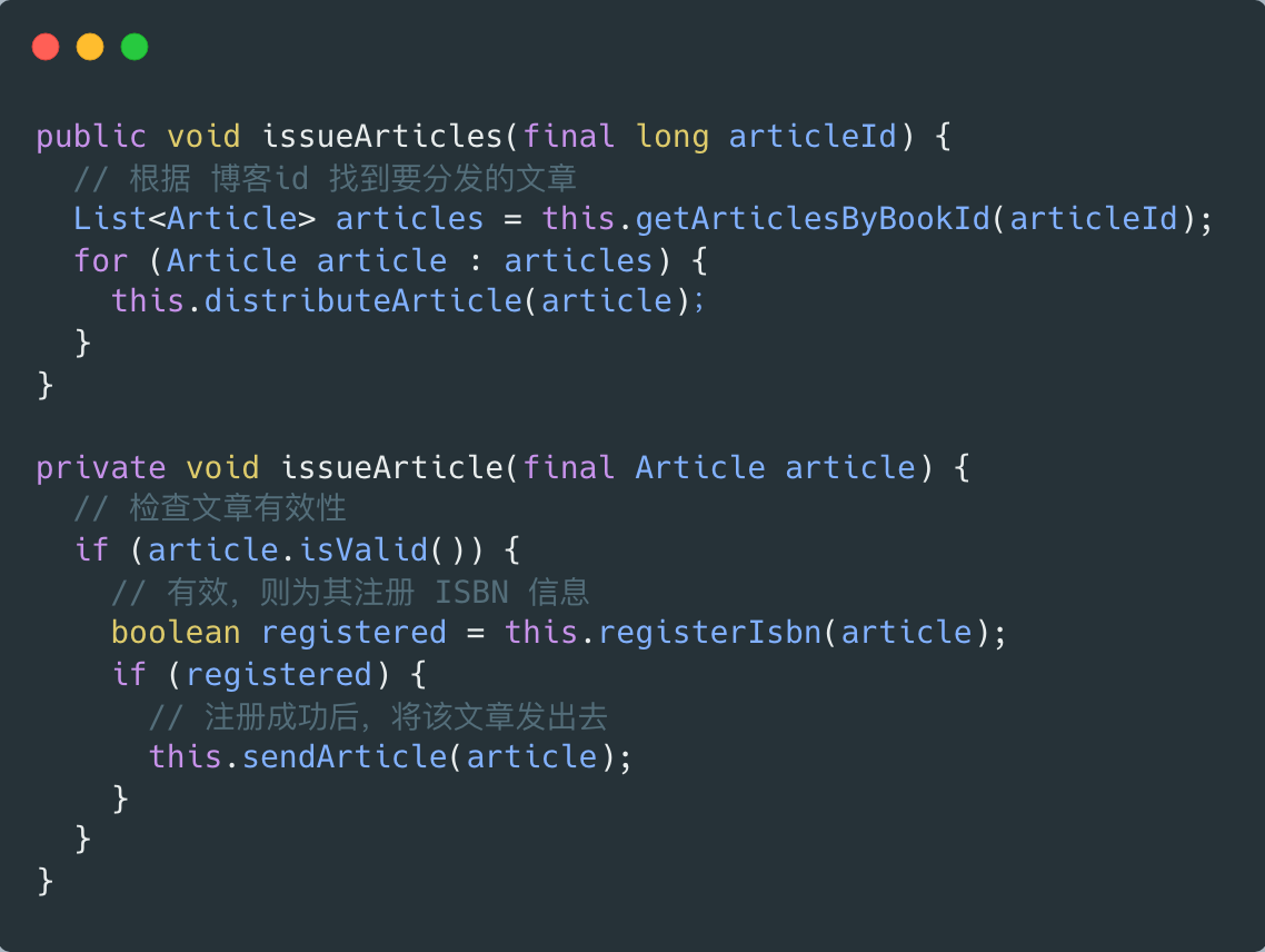 - issueArticles 只有一层缩进,这才是正常方法应有的样子