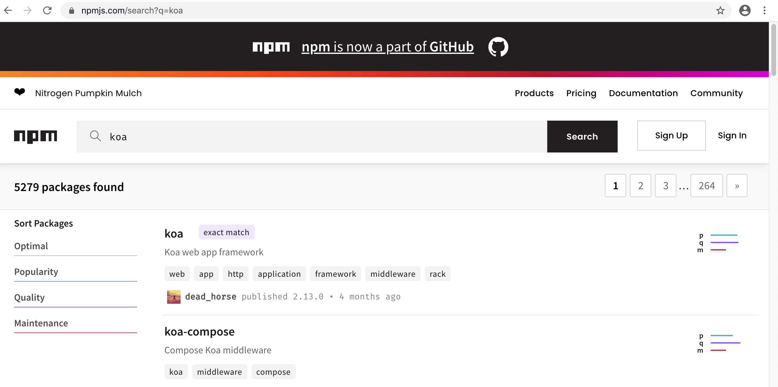 在NodeJS的开发社区中,有一个网站叫做npm registry: 。