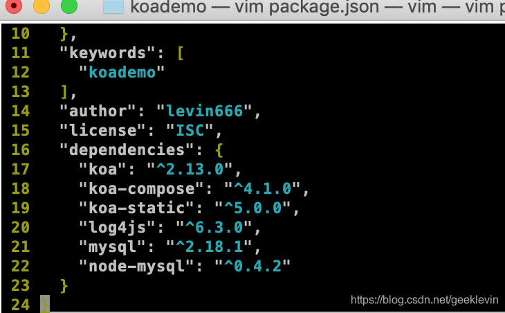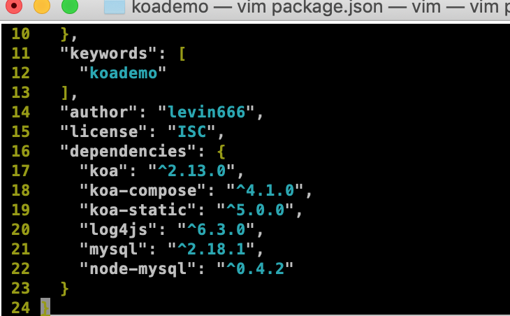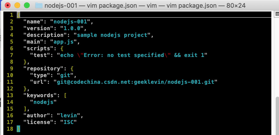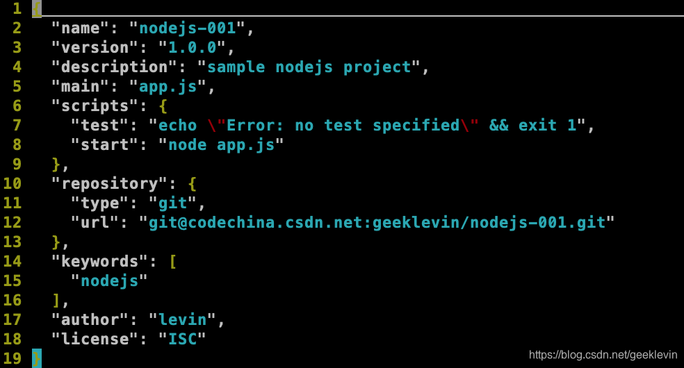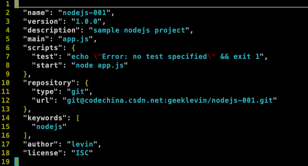 我们打开package.json, 它定义了这个项目的name,version和描述。
