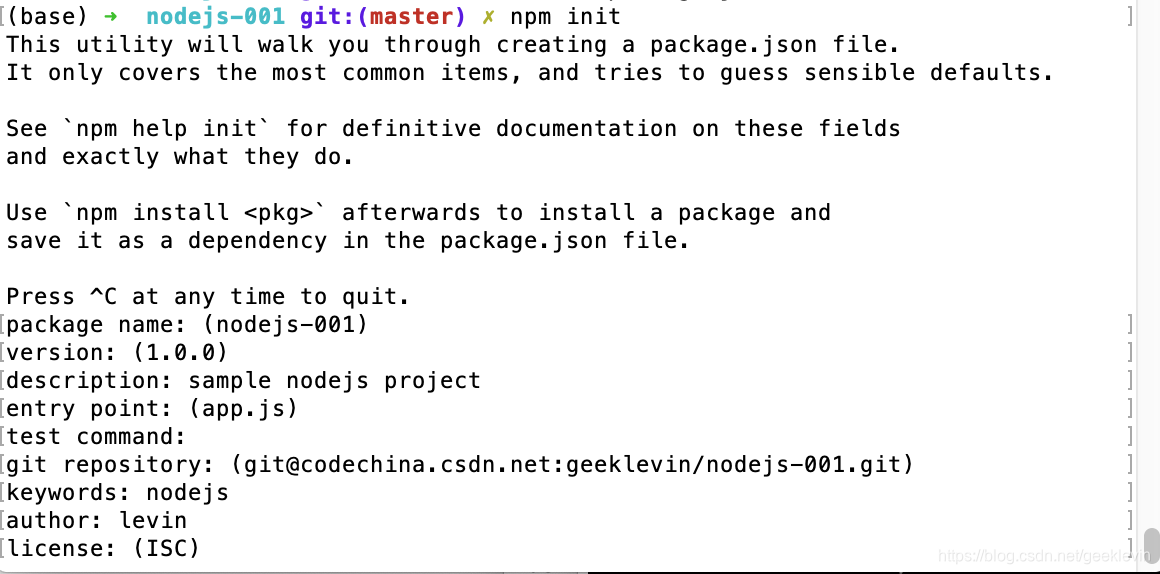 如下图,中间过程会有提示很多输入选项,重点关注package(包) 和version(版本号)。