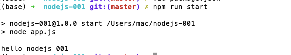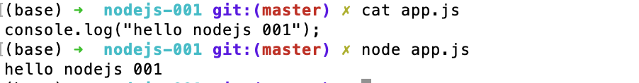 先到这里,上图为第一个nodejs项目的执行效果。这个示例很简单:app.js写了代码调用console.log输出"hello nodejs 001"。