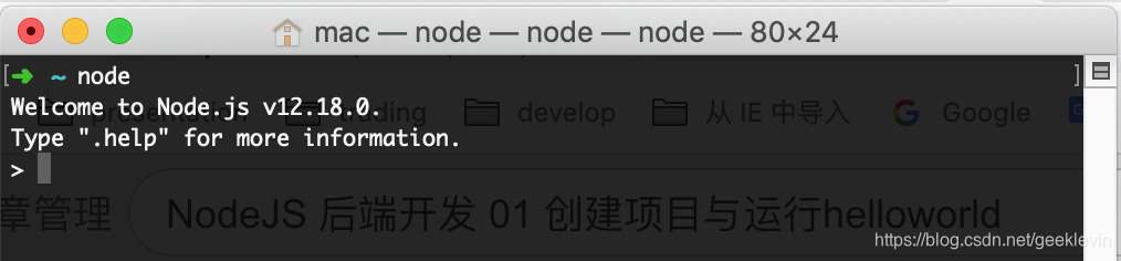 安装好后,打开cmd(命令行)或者苹果电脑打开terminal(终端),输入node