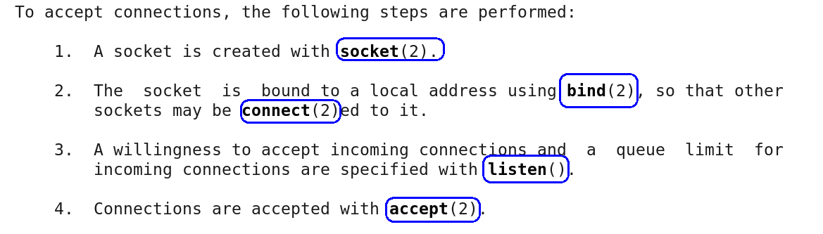 | #include <sys/types.h> /* See NOTES */ #include <sys/socket.h> int listen(int sockfd, int backlog); |