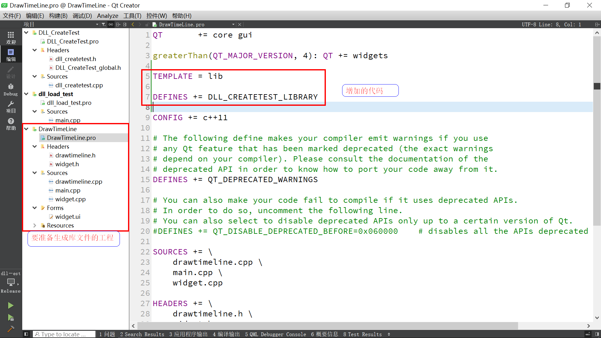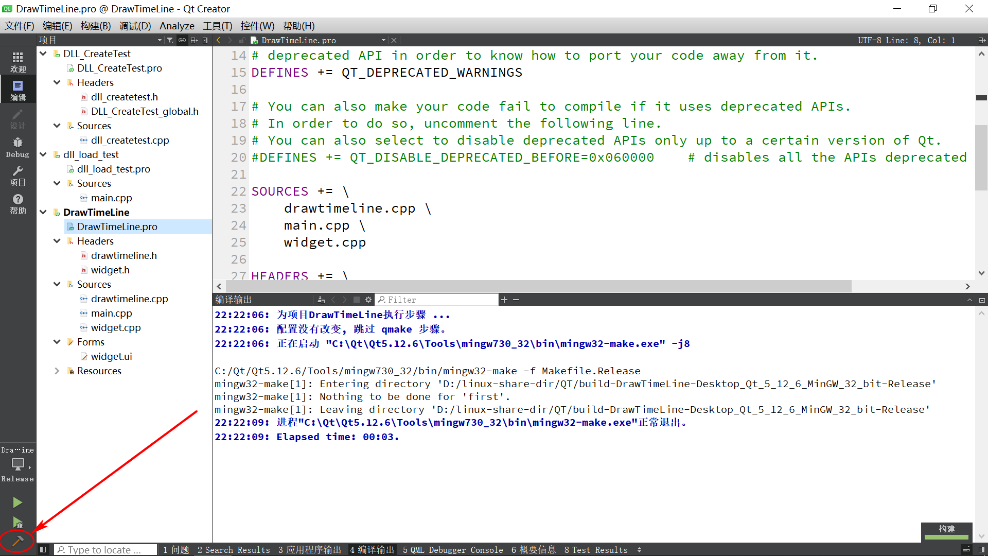 QtCreate创建工程的向导里有创建库的工程选项,按照向导创建工程之后,写好代码,点击QtCreate左下角的 “小锤...