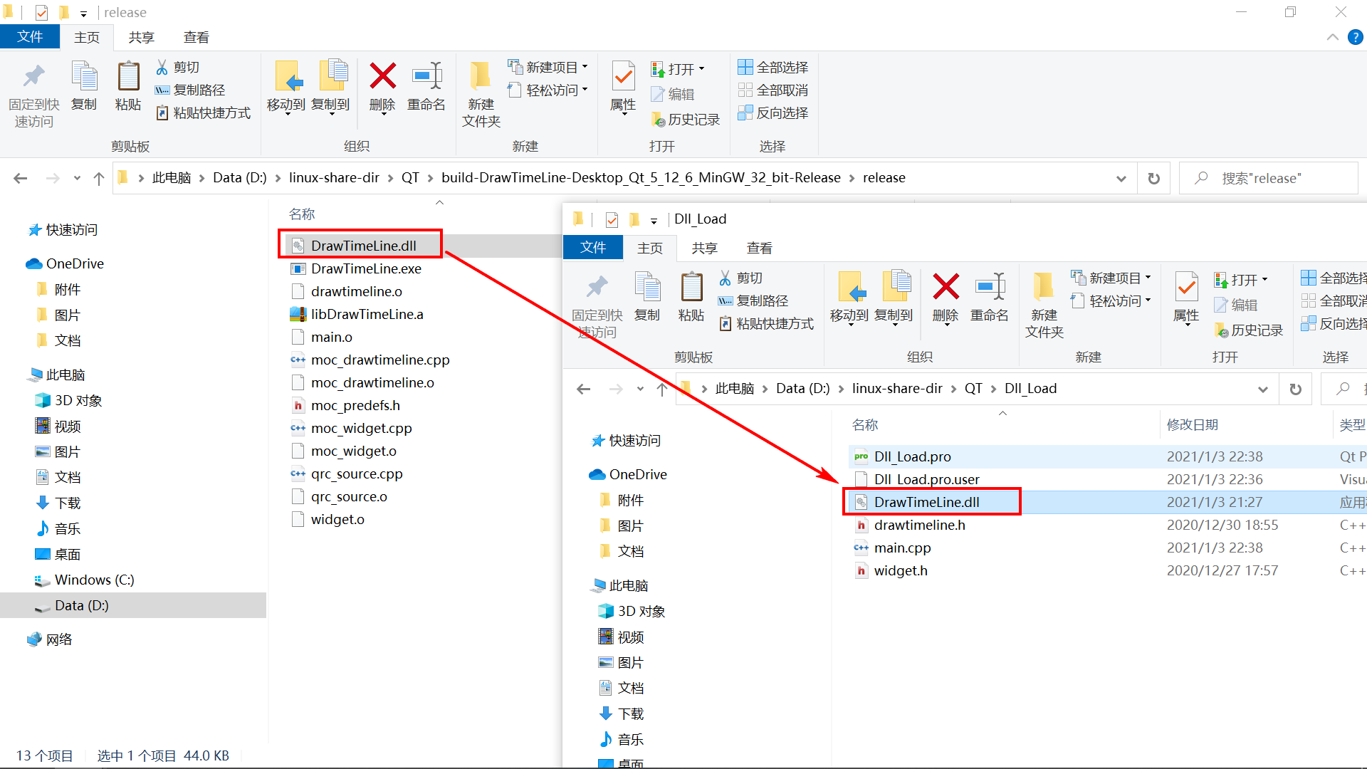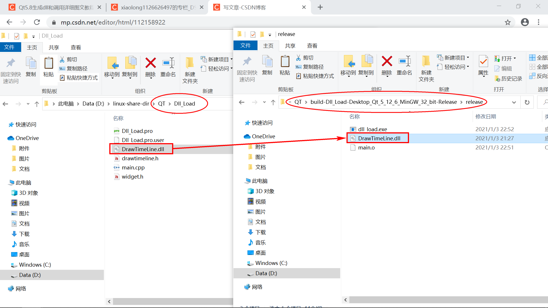 (2). 将原工程生成的dll动态库拷贝到新工程(调用库的测试工程)的目录下。