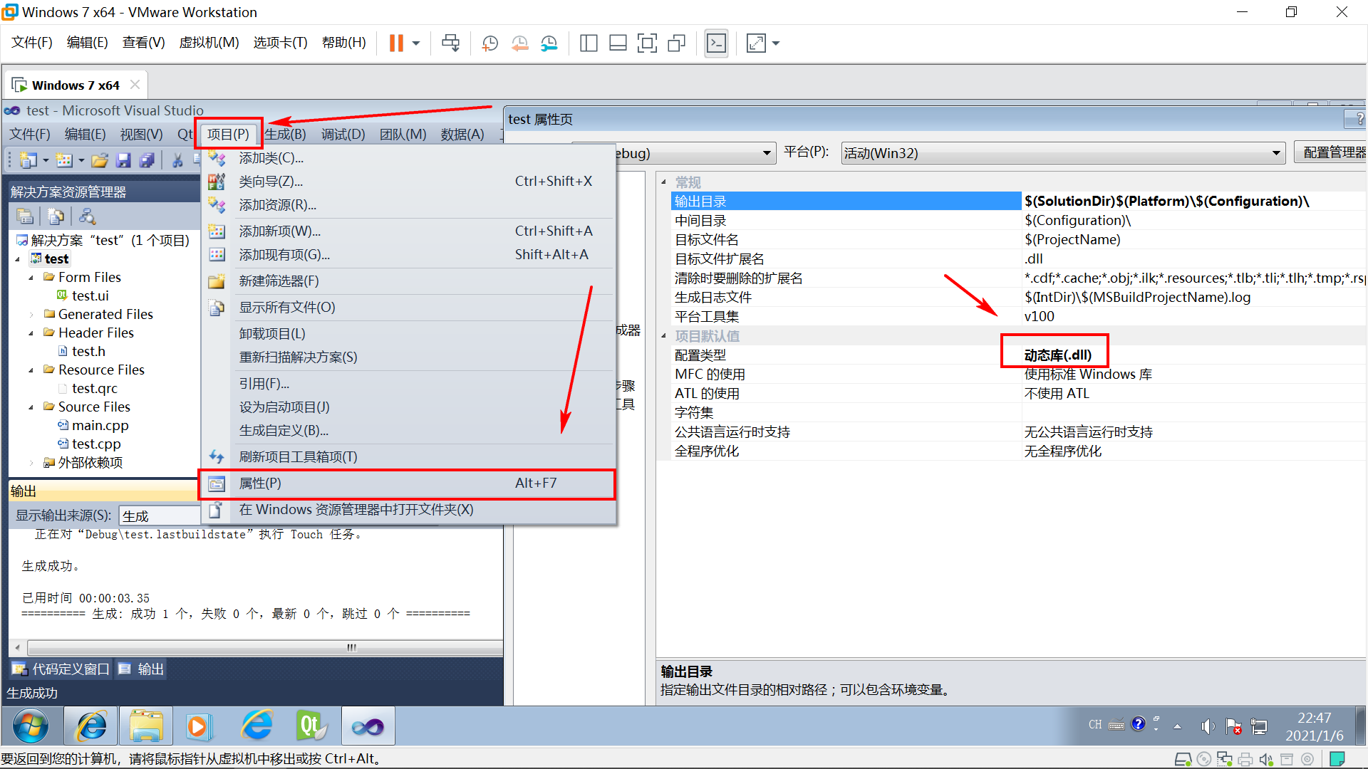 在VS+QT开发生产动态库,可以直接在VS的工程属性里配置: