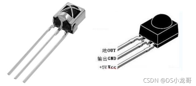 原始信号就是要发送的一个数据“0”位或者一位数据“1”位,而38K 载波就是频率为 38K 的方波信号,调制后信号就是最终我们发射出去的波形。使用原始信号来控制 38K 载波,当信号是数据“0”的时候, 就发送38K载波,当信号是数据“1”的时候,就不发送任何载波信号,那么数据接收方只需要检测是否收到38KHZ的载波就行判断是否收到了数据。实验板上带了一个一体化接收头HS0038B,可以识别38KHZ的载波信号,当HS0038B收到38KHZ载波就输出低电平,没有收到38KHZ载波就输出高电平;程序就可以判断HS3008的引脚电平配合指定的协议格式来分析收到的数据。