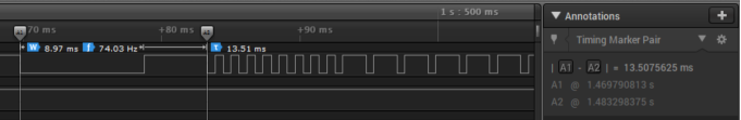 为了更加直观的理解NEC协议格式,可以使用逻辑分析仪或者示波器采集HS0038红外线接收头收到的数据,再通过软件分析收到的数据。