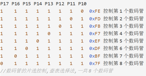 code u8 LED_CS_Config[]={0xFE,0xFD,0xFB,0xF7,0xEF,0xDF,0xBF,0x7F};