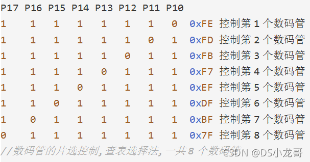 LED_CS=LED_CS_Config[i]; //控制数码管的片选