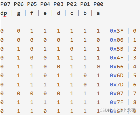 通过得到的编码,定义成数组,小数点默认不点亮。 数字0~9