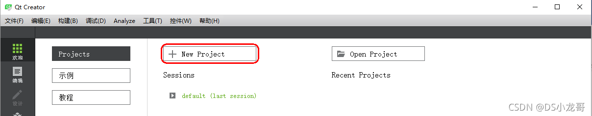 1.打开QtCreator软件,选择New Project,新建一个工程。