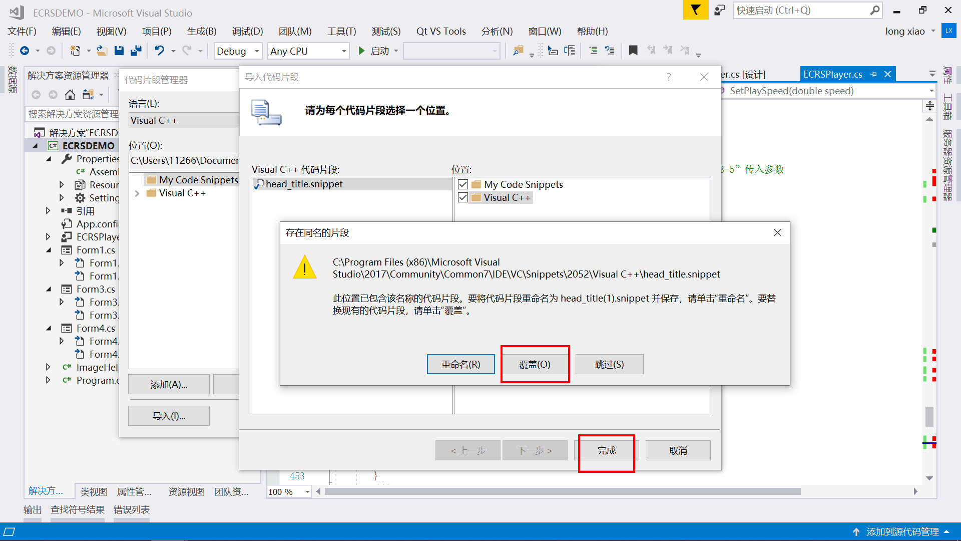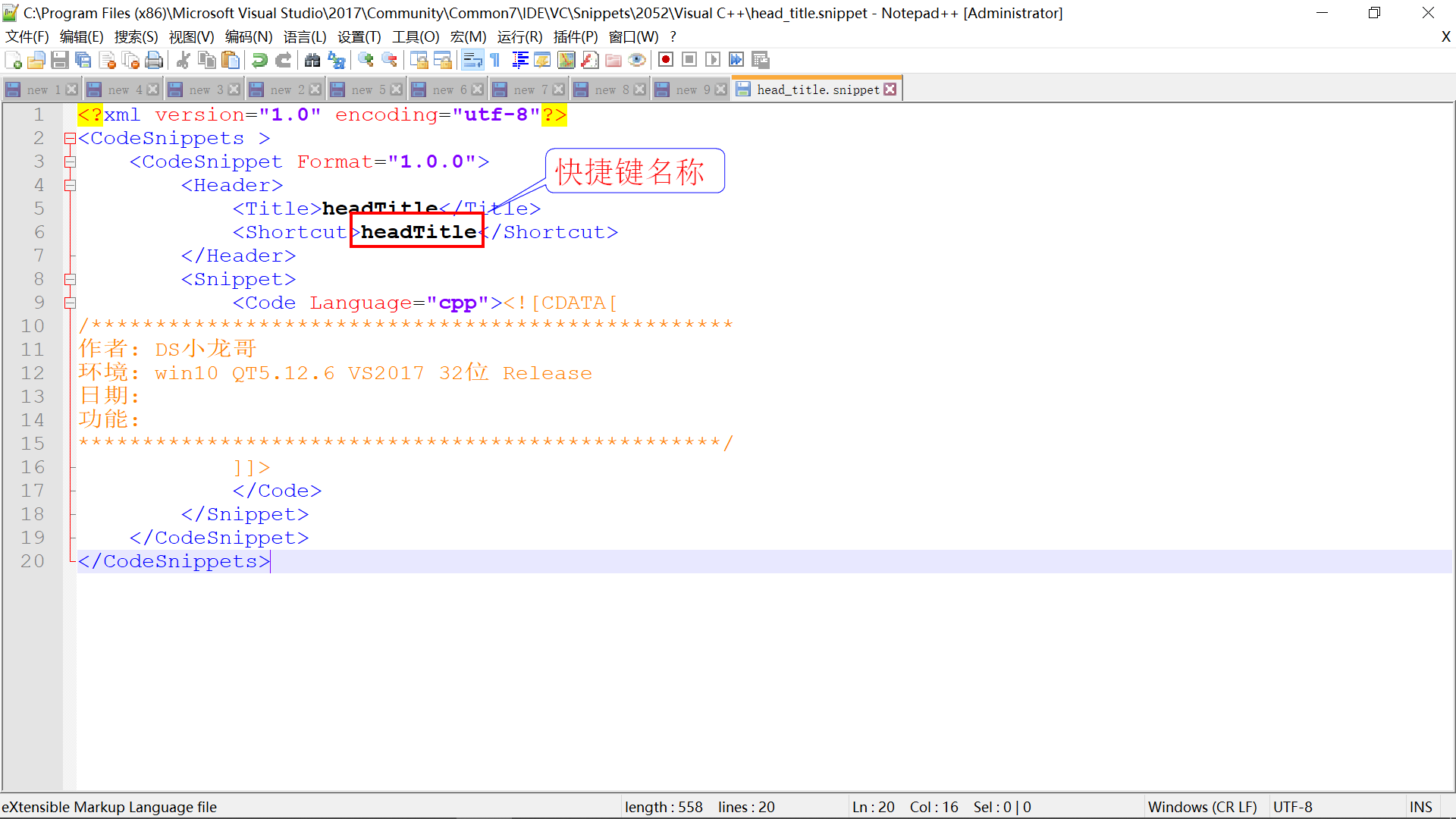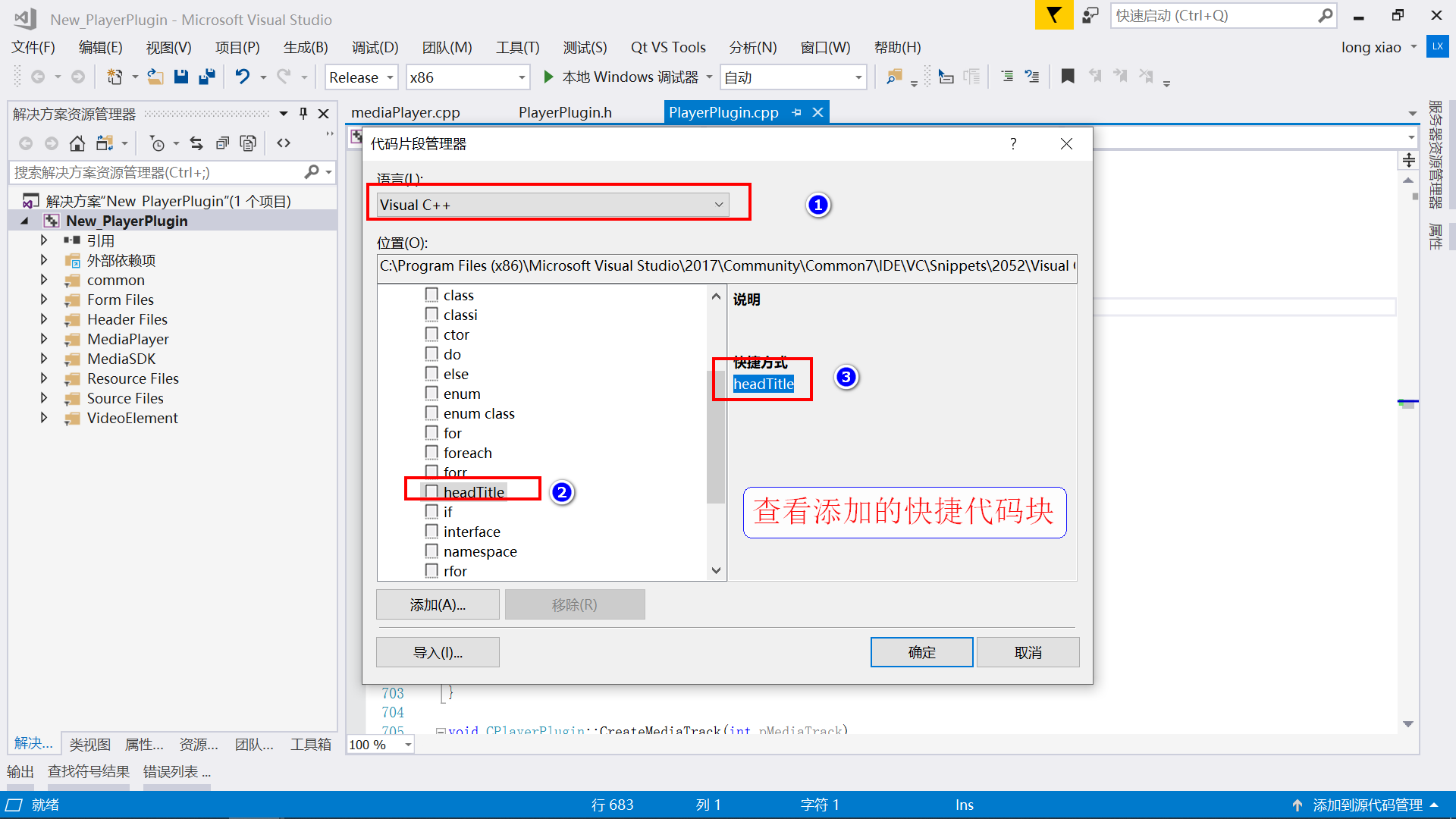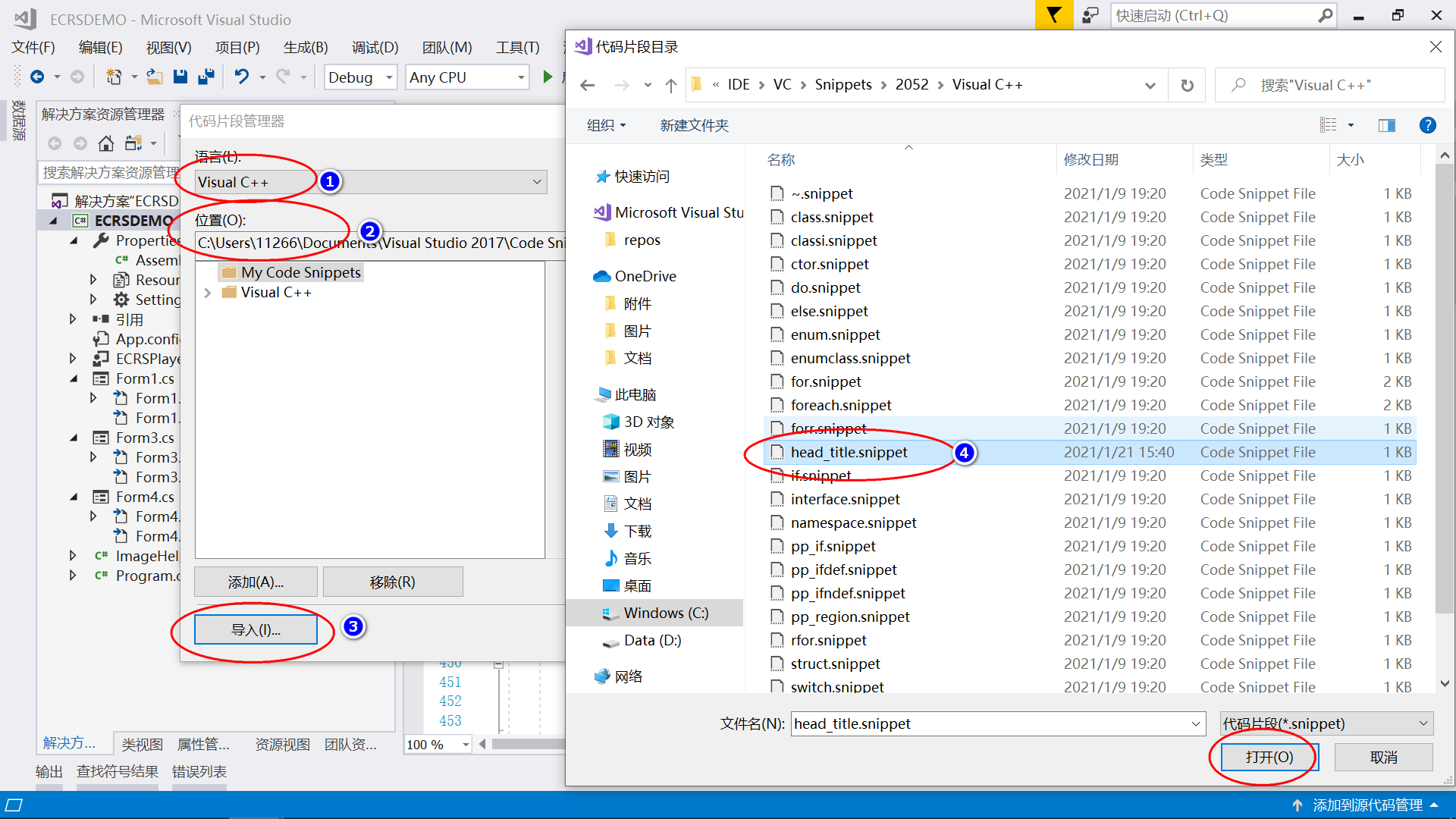 (1). 进入VS2017的代码片段配置目录